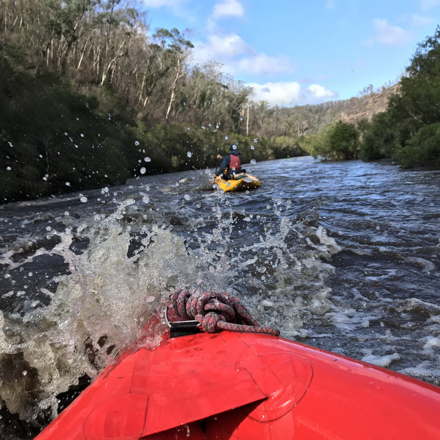- low water rafting in 2 person sports rafts on Victorian rivers